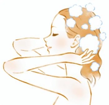①まずは日焼けによる炎症が起こらないように、低刺激のシャンプーで優しく頭皮を洗います。
