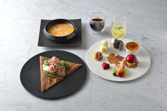ホテルのラウンジを思わせる贅沢な空間が魅力的な店舗内では、ガレットやフレンチフライなどのアラカルトをはじめ、ランチやディナー共にコース料理を提供しているので、カフェの利用はもちろん食事も楽しめるデートにぴったりなお店です。