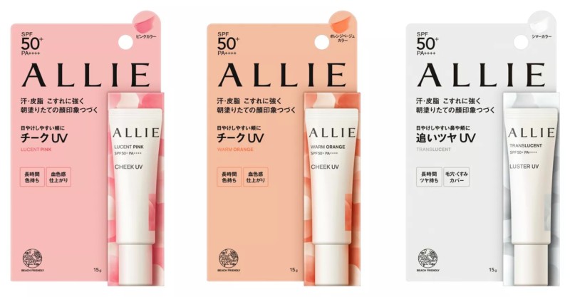 日焼けしやすい部分のUV対策と、キレイで自然な仕上がりを両立する『アリィー クロノビューティ カラーチューニングUV』。高UVカット性能と、ポイントメイクとしてのチークやハイライトを兼ね備えた、新たな日焼け止めです。また、チークやハイライトとして使える新感覚の日焼け止め『アリィー クロノビューティ カラーオンUV』が全3色でデビュー。ポーチにインしやすいコンパクトさで、お直しにも活躍します。