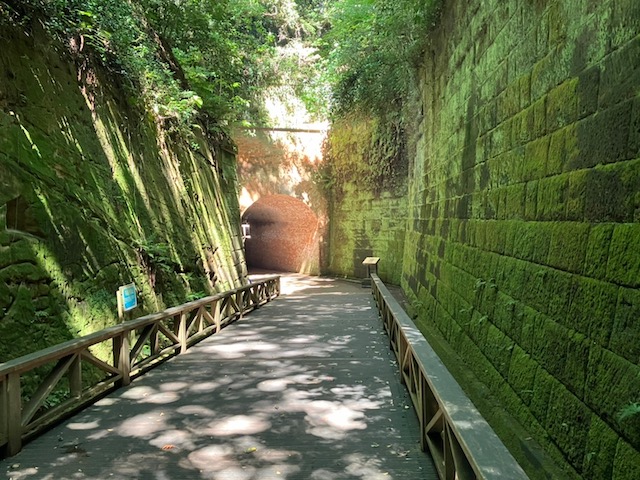 猿島は幕末から第二次世界大戦前にかけて、東京湾の首都防衛拠点となっていたそうです。実際に砲撃台跡や水路のような跡地も見えました。