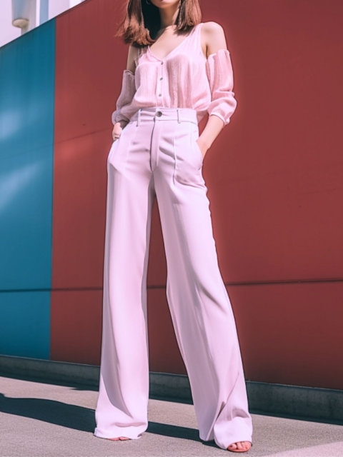 トレンドのGUバギージーンズはクリーム味のかかった白トップスと合わせれば夏コーデにぴったり。シルエットが太めのバギーパンツはカジュアルなイメージが強いですが、色味の濃い物を選ぶときれいめな着こなしにも取り入れやすくなりますね!大人デートにぴったりな綺麗めコーディネートです。