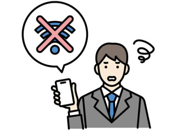 Wi-Fiアイコンにビックリマーク(!)が表示されている場合、Wi-Fiに接続はできているが、Wi-Fi自体に問題が発生していることを意味します。Wi-Fiの電波は掴んでいるもののネット通信ができない状態のため、スマホ・パソコンで「インターネットに接続されていません」などとエラーメッセージが表示されることが多いです。